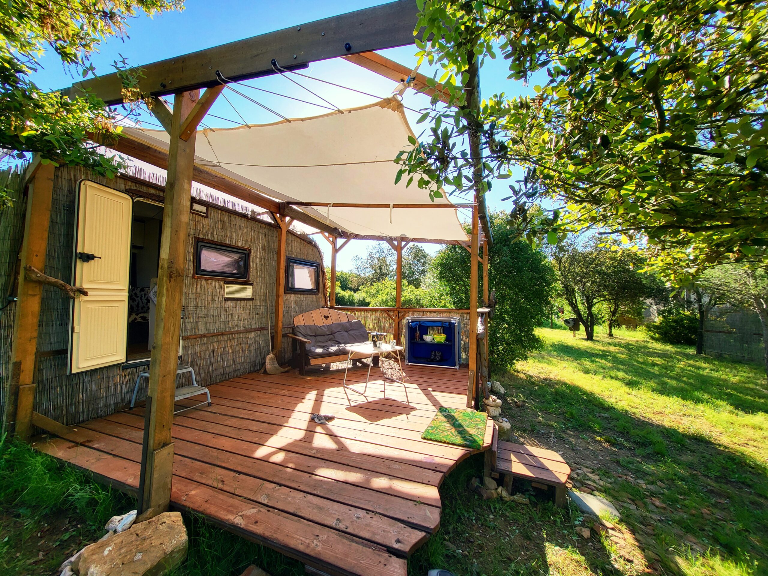 In the countryside of Cessenon, amidst the breathtaking beauty of the vineyards, lies our old wine domaine. Here we offer you a unique opportunity to fully relax and enjoy nature. The caravan is located on a secluded piece of land among pine and olive trees. You have complete privacy, but you also have the possibillity to find entertainment in the surrounding erea.